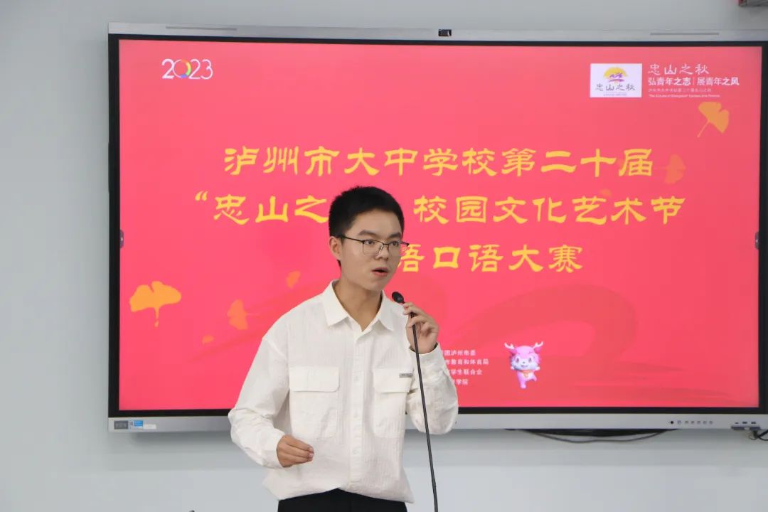 由泸州高中李林林、王琳老师指导的孙彧轩同学在泸州市大中学校第二十届“忠山之秋”校园文化艺术节英语口语大赛中荣获一等奖第一名。