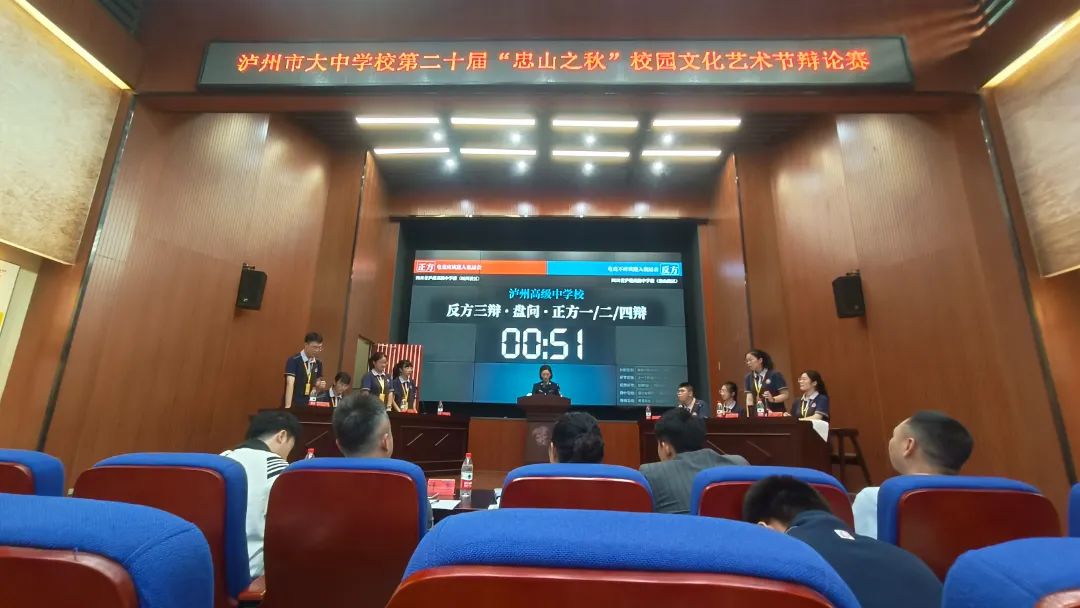 泸州高中忠山校区纵横辩论队和城西辩论队在泸州市大中学校第二十届“忠山之秋”校园文化艺术节辩论赛(中学组)决赛相遇,经过激烈的角逐,忠山校区纵横辩论队获得冠军,城西校区辩论队获得亚军。