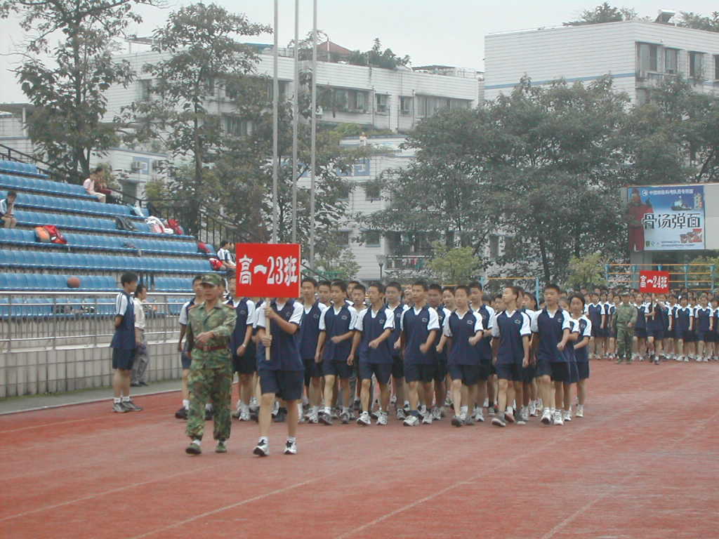 05.8.27下午3点泸州高中2008级军训暨入学教育总结大会在我校足球场举行。