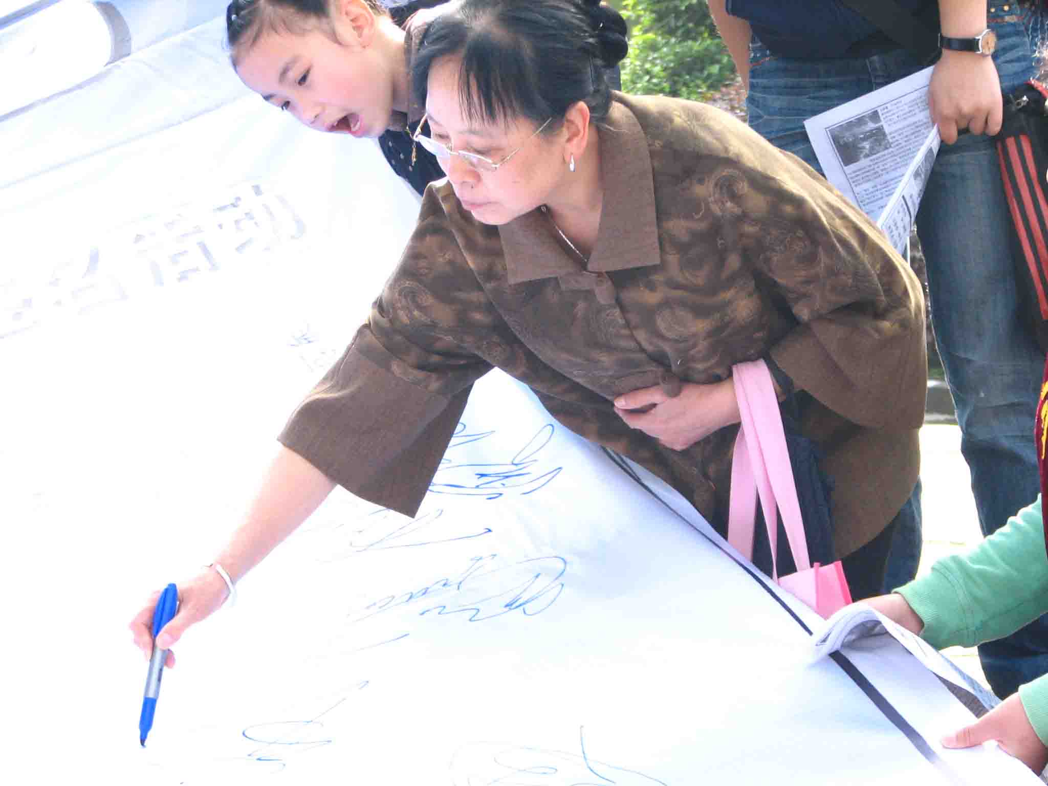 参与签名的群众络绎不绝,更有不少年轻人带着自己的孩子、老年人带着自己的孙子在标语上留下两代或三代人的姓名。有的孩子刚学会走路,还不知道怎么拿笔,长辈们便教会他们握笔,并捉着他们的小手,一笔一画地写下自已的名字,把第一次学写字的经历留给了第40个世界地球日。(完)