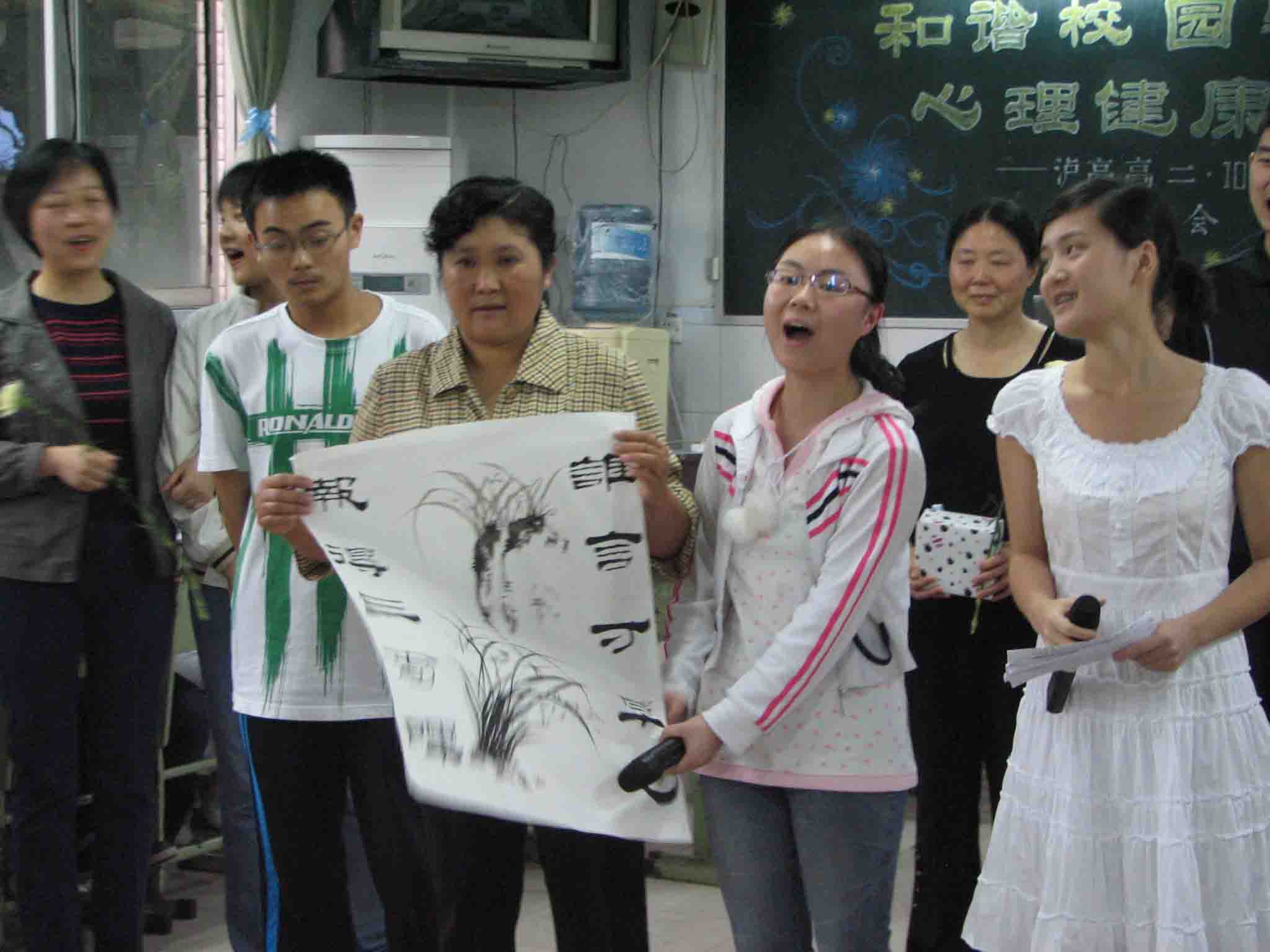 学生们通过自编自导的提问作答、正反辩论、节目表演等形式,就如何解决因学习压力、性格缺陷、生活挫折、早恋、亲子关系紧张等所造成的心理问题自行寻找解决方案。对难以解决的某些心理问题,学生主持人还在现场大胆求助于心理老师。在高二(10)班,有几名学生的母亲接受邀请参加了活动,在活动中,孩子感谢母亲的养育之恩,动情地向母亲倾诉平时难以说出的心理话,并向母亲赠送鲜花、绘画等礼物,在母亲节来临之际,祝母亲节日快乐。最后是母亲与孩子之间的紧紧拥抱。平时母亲和孩子之间的误会与隔阂瞬间融化,宽容与谅解由此产生。这一情景让在场的感动不已。