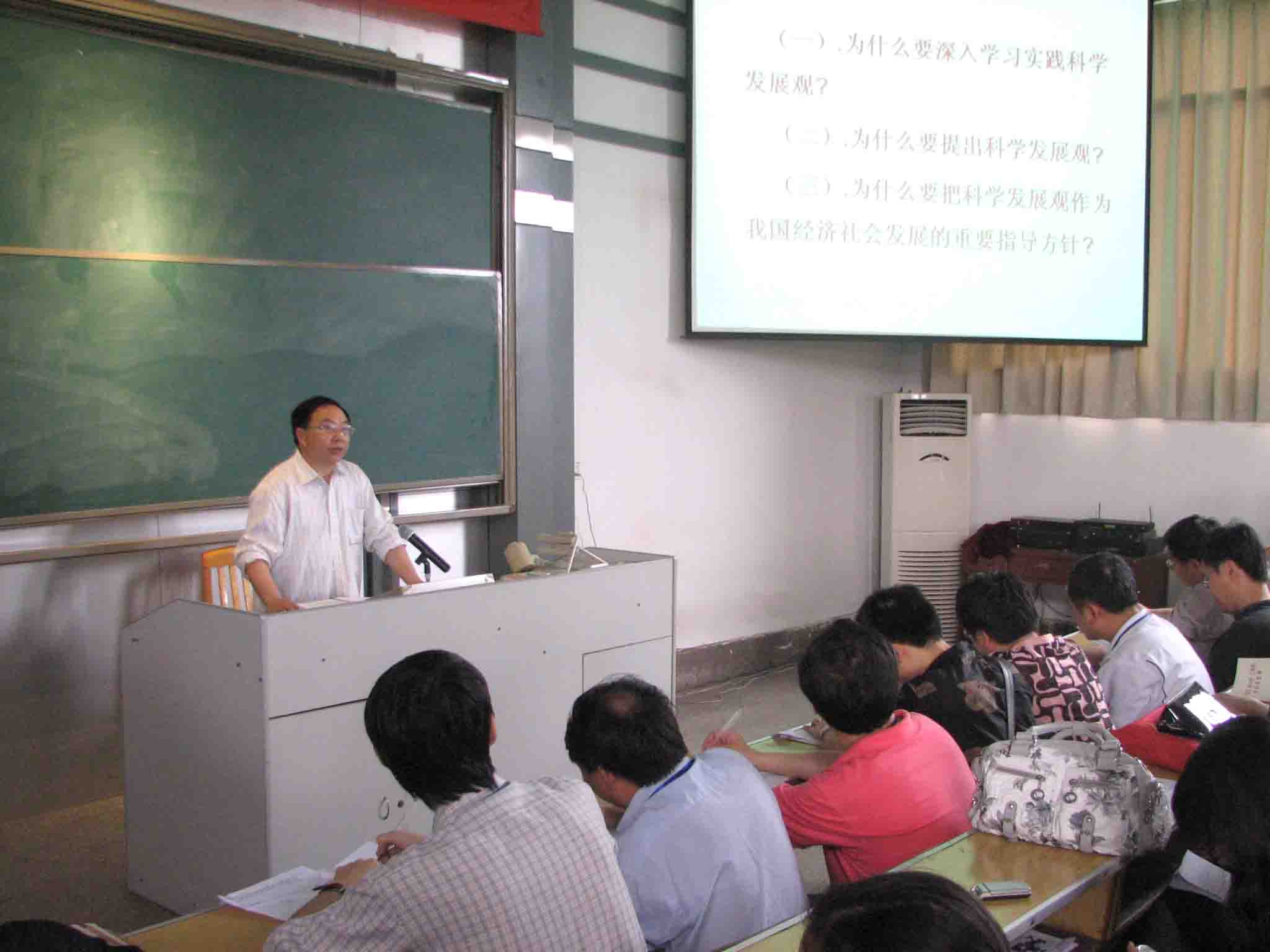 报告准备充分、构思周密、高屋建瓴、深入浅出、逻辑力量强,多媒体课件图文结合、形象直观、富有感染力。参会人员一边专心听讲,一边认真记录,不时报以热烈的掌声,通过1个多小时的学习培训,对科学发展观有了更深入、更全面的认识。(完)