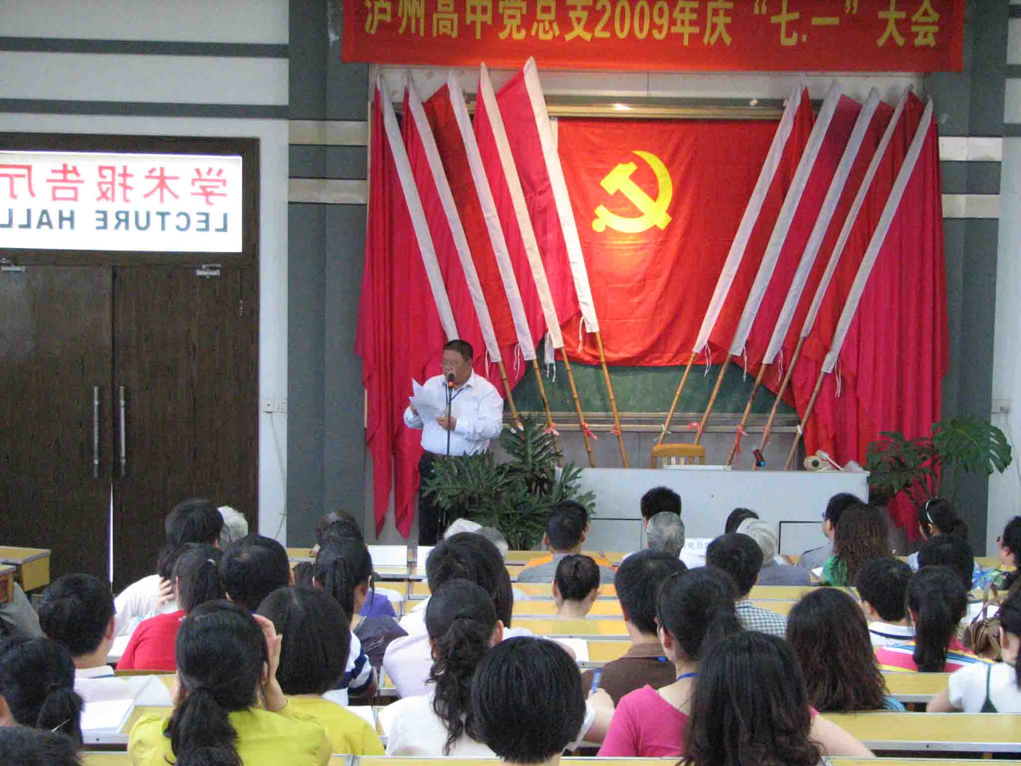 学校党总支书记、校长肖林深情地讲述了中国共产党八十八年的光辉历程,令人振奋地宣布了泸州高中今年高考所取得的卓著成绩,是向党的生日赠送的一份厚礼,激励全体党员高举党的伟大旗帜,继承和发扬党的光荣传统,以“科学发展观”为指导,进一步实施精品战略,为把泸州高中打造成全国一流学校而努力奋斗。