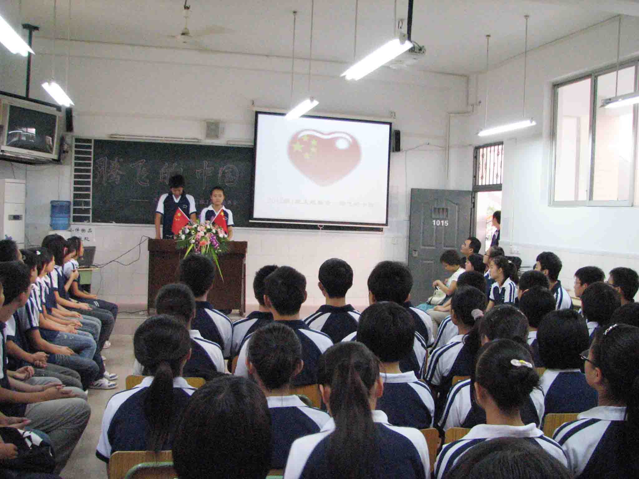 9月22日,泸州高中开展主题班会活动,热烈庆祝建国六十周年。在学校的广泛动员下,各年级各班都作了精心准备。主题班会形式多样,内容丰富,有诗歌朗诵、故事讲演、小品表演、歌曲演唱、视频观赏、幻灯播放、话题讨论等,通过这些生动活动的形式,学生们了解了祖国的锦绣河山、富饶物产和六十年的发展变化,特别是改革开放30周年所取得的重大成就,产生了生活在祖国和平富强年代的自豪感和幸福感,抒发了热爱祖国、热爱中国共产党、热爱社会主义的赤子情怀。活动中,很多学生表示要刻苦学习,奋发有为,用实际行动来建设祖国更加美好明天。(完)
