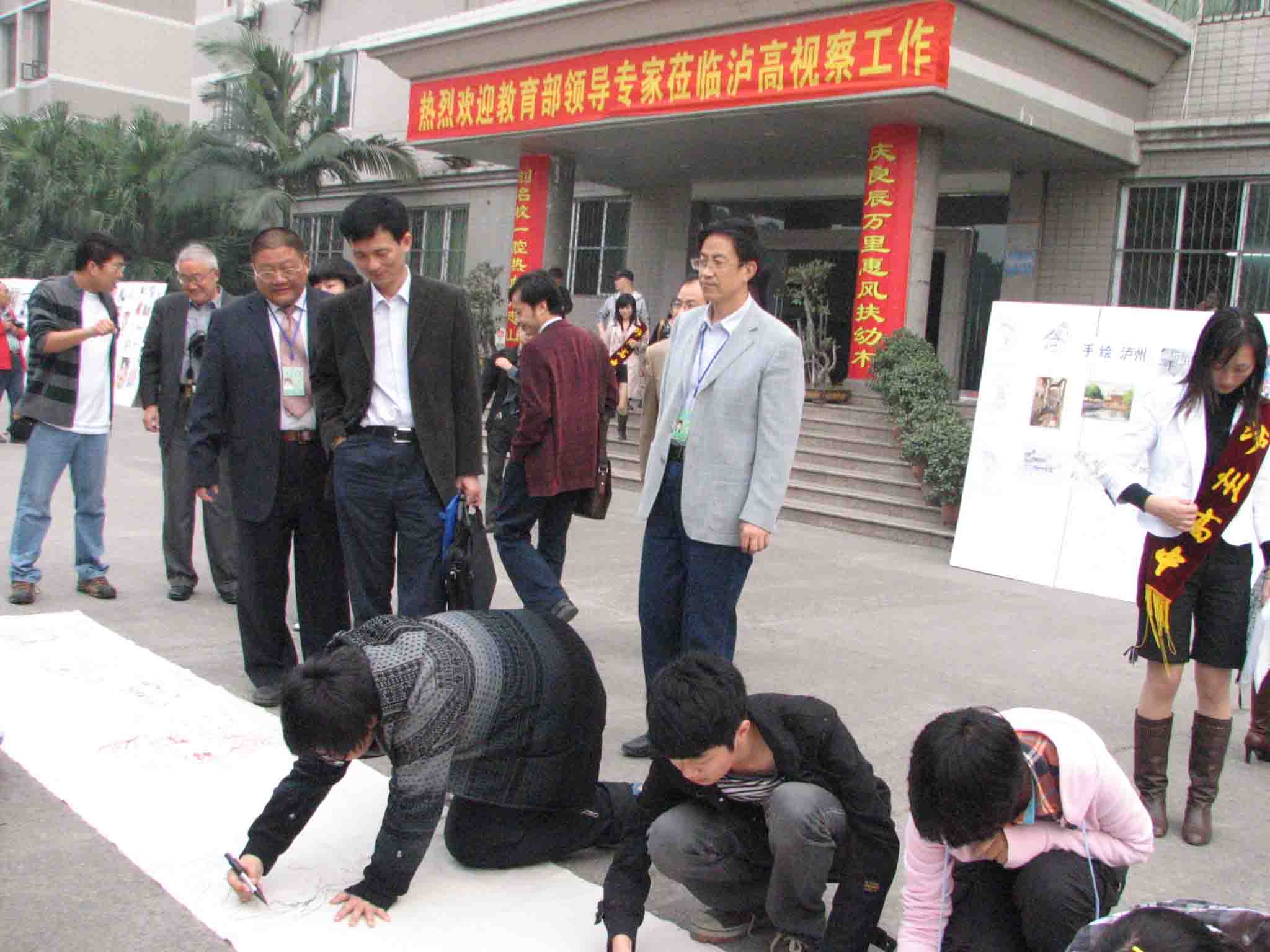 11月11日,教育部专家组范纯、侯令一行在市教育局副局长周亚琼的陪同下到泸州高中调研学校艺术教育工作,并对泸高艺术教育工作给予高度评价。