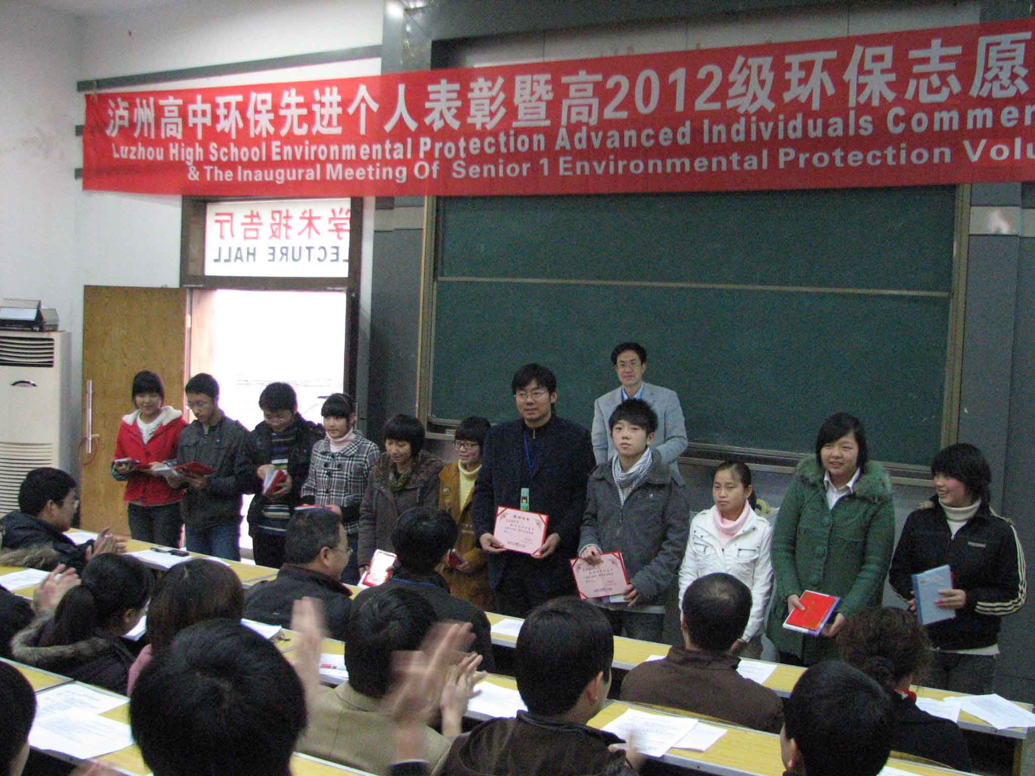 这是泸州高中继创建成省级“绿色学校”后,进一步将此项创建工作推向更高台阶的重要举措。赵晓林在作动员报告时,强调了开展环保教育、创建绿色学校的重要性,对开展绿色教育、绿色实践和绿色校园建设等活动提出了要求。会议散发了《国家级‘绿色学校’评估验收指标(试行)》表,落实了志愿者各类人员的分工和职责,并对环保工作先进个人进行了表彰。随后,全体与会人员挺直站立,举起右手庄严宣誓:“从我做起,从每件小事做起……为把泸州高中建设成为国家级绿色学校而努力。”(完)