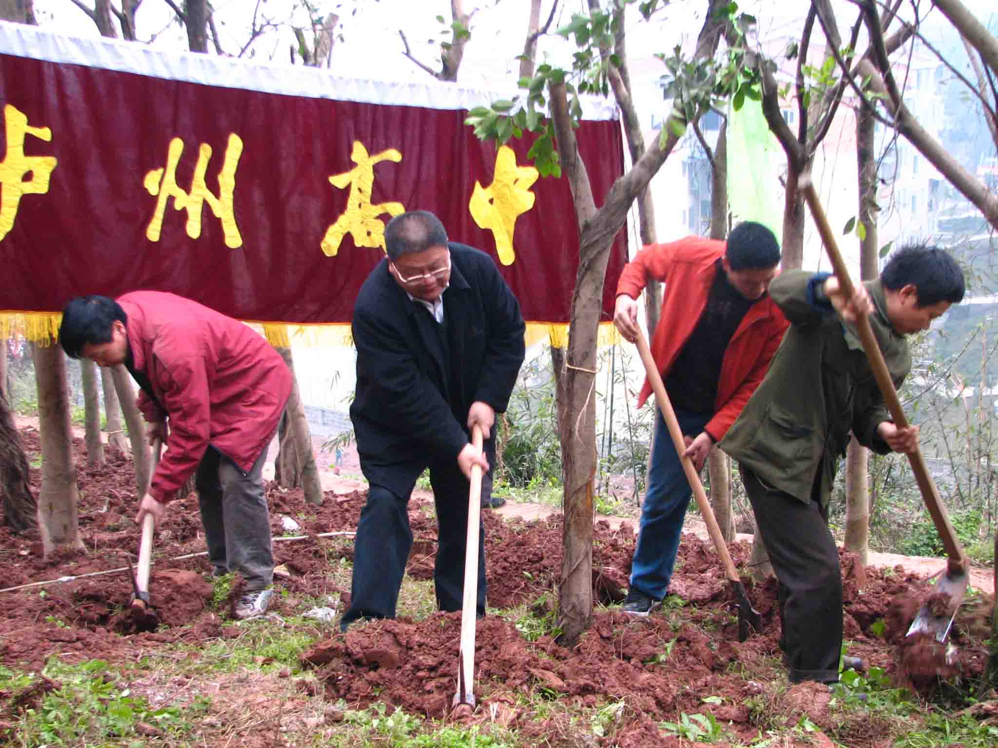 ,泸州高中党总支书记、校长肖林带领学校教职工到三道桥公园植树。不到两小时便植下了