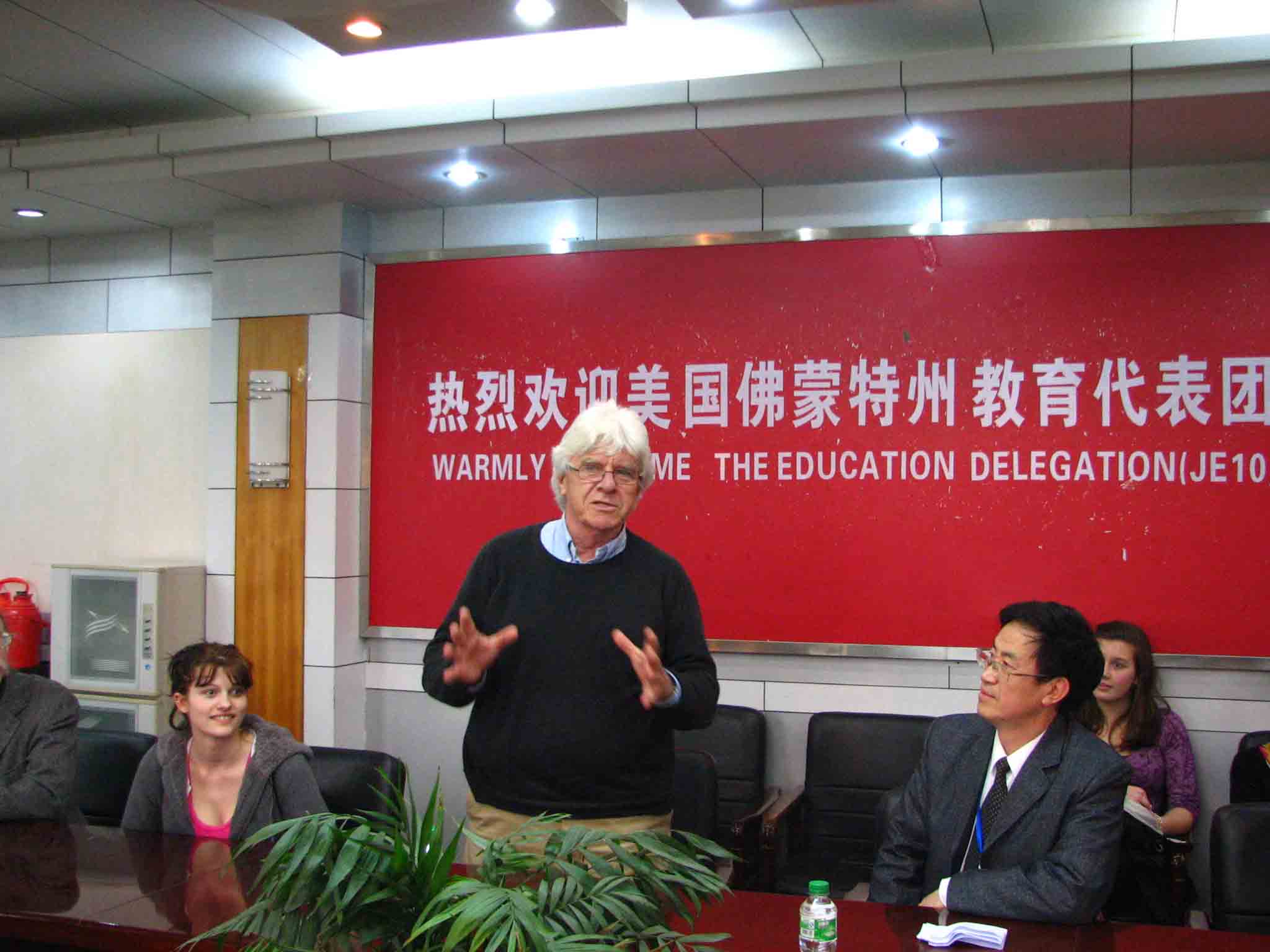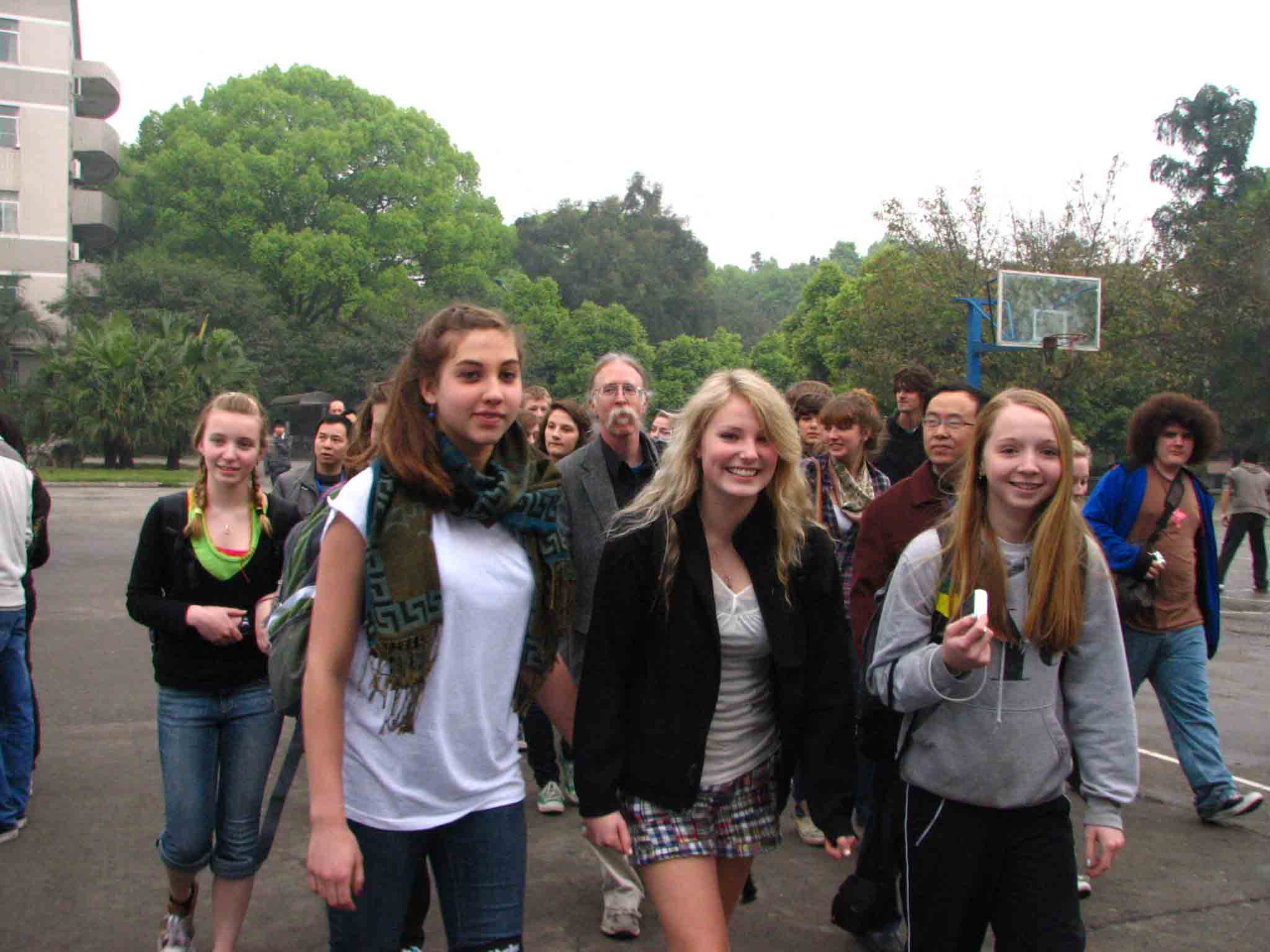 在欢迎仪式上,泸高领导向林兰格瑞的师生介绍了四川是大熊猫的故乡,泸州以老窖酒闻名,泸州高中是四川一流的国家级重点学校。在喜悦的气氛中,林兰格瑞的师生们参观了泸高校园环境和文化展览室,称赞泸高环境优美,空气清新,校风文明,是学习的天堂。代表团师生们还走进泸课堂,与泸高师生深入交流环保问题,大家一致认为,地球为人类所共有,保护地球是人类共同的责任。当代表团领队汤姆·卡纳尔了解到泸州高中正创建国家级绿色学校,师生志愿者们致力于开展环保宣传教育、义务植树、节水节电、长江生态调查、环保国际交流等方面的活动时,汤姆先生的双手由衷地翘起了大拇指。泸林两校的学生精神饱满,非常活跃,互相都有交流不完的话题。在教学活动中,美国客人发现泸高学生的英语水平高,不仅善于用英语与他们对话,还能用英语与他们同唱一首歌,表达共同的心声和信念。