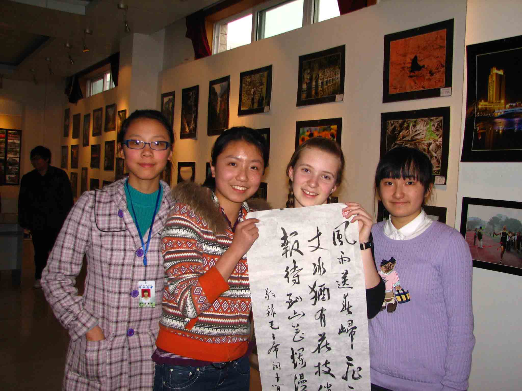 林兰格瑞的师生对中国的书法绘画、民族服饰、古镇建筑、传统工艺和酒文化等特别感兴趣。有的学生向泸高学生请教书法、绘画,索要作品。泸高学生则大展才艺,除手把手教客人认识汉字、书写汉字外,还现场创作书画作品送给客人。林兰格瑞的一名女生布兰迪爱好广泛,她在民族服饰展台面前流连忘返,向泸高教师请教了很多问题,并戴上饰品与模特合影。布兰迪还喜欢中国历史,尤其是中国近现代史,她知道毛泽东和蒋介石,但更喜欢毛泽东。她