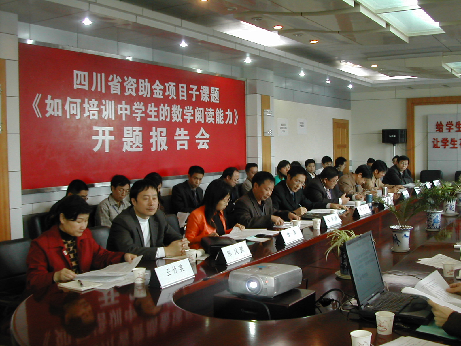 11.4上午,四川省资助金项目子课题《如何培养中学生数学阅读能力》开题报告会在泸州高中顺利召开。本次会议由泸州高中副校长赵晓林主持。泸州市教科所高中数学教研员、子课题主研人员郑凤渊宣读立项通知。接着子课题主研人员曾庆君作开题报告。四川省教科所办公室主任、总课题负责人李兴贵、泸州市教科所科研室主任宋明清对子课题分别作了指导,他们首先肯定了该课题的研究价值,同时也提出了很好的建议。