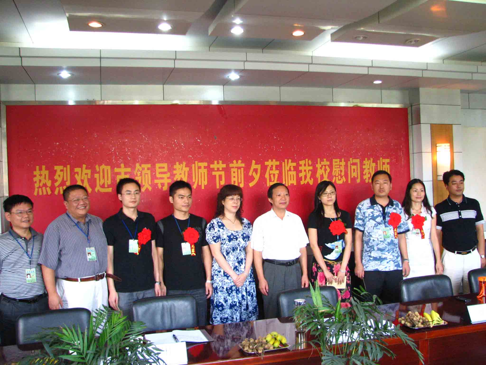 最后,梁伟华一行向6名优秀教师代表赠送了慰问金,并与他们和学校领导合影纪念。