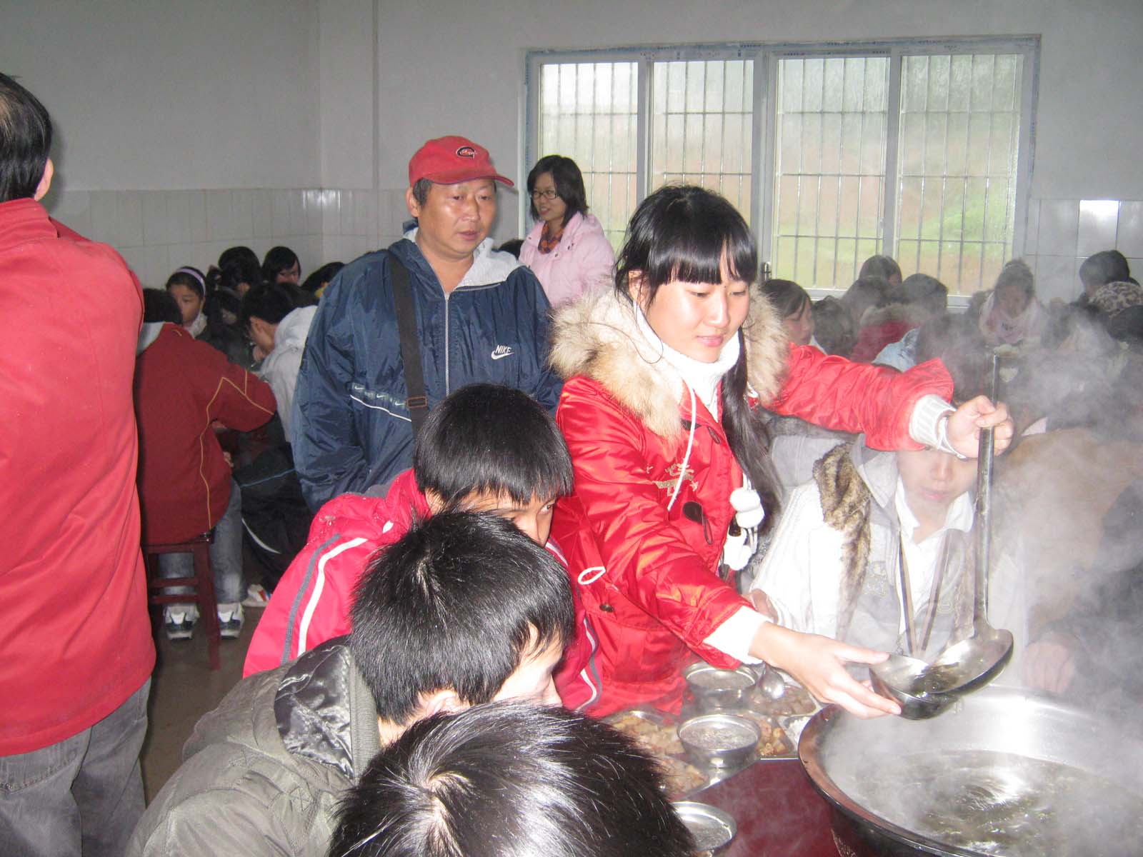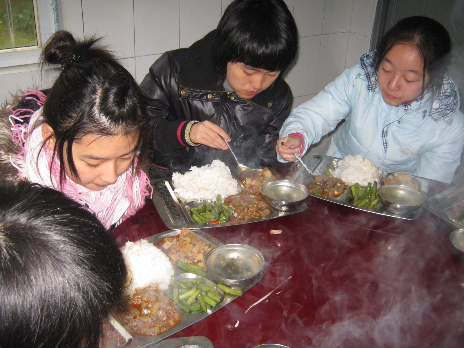 学生们在劳动实践基地食堂就餐。