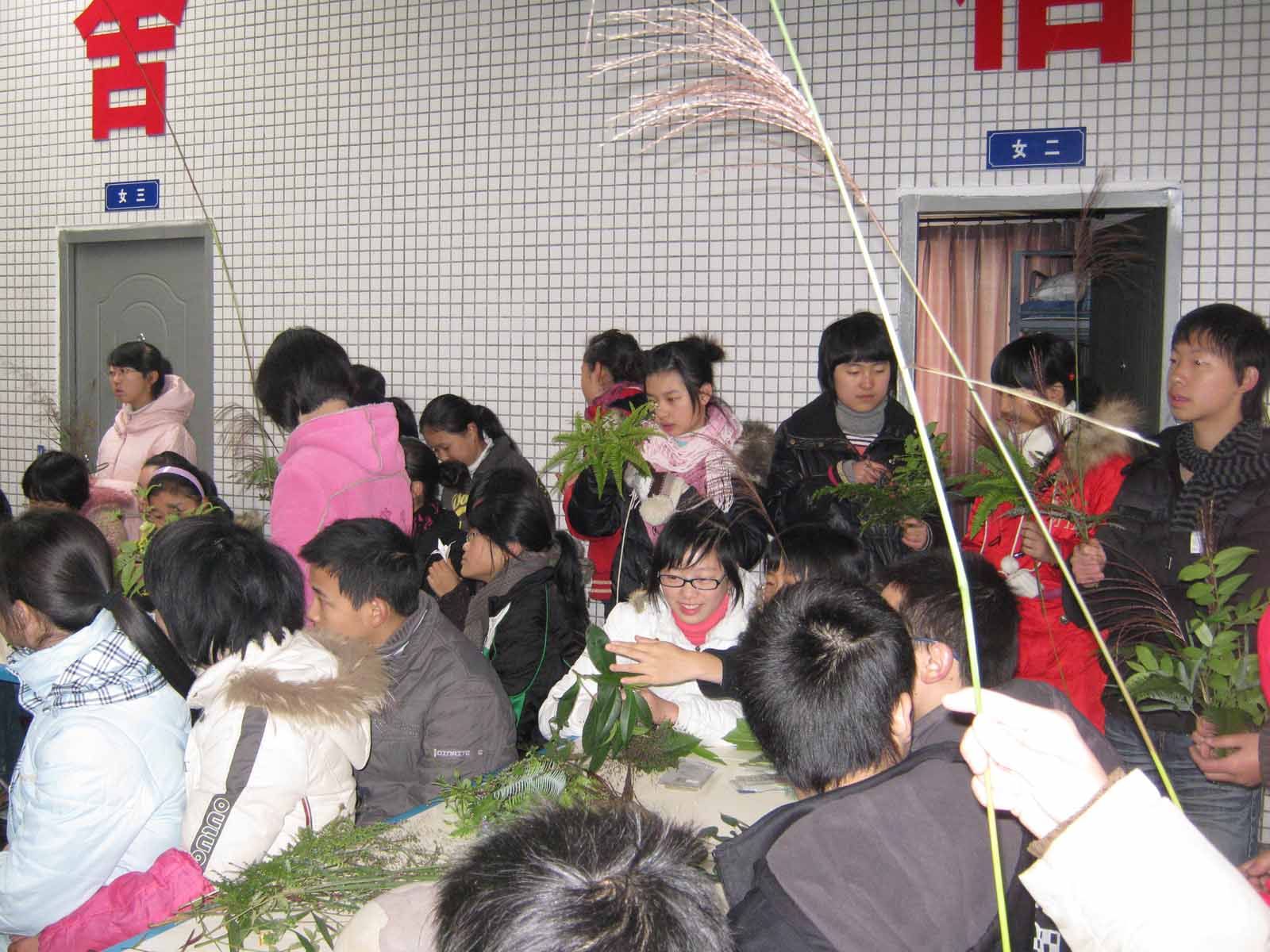 学生们在劳动实践基地利用天然资源制作工艺品。