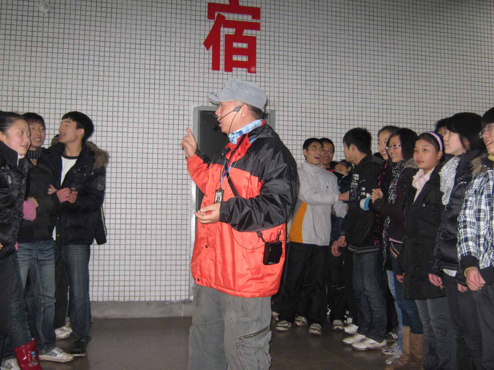 登山俱乐部的专业人员对劳动实践基地向学生们传授户外拓展运动。
