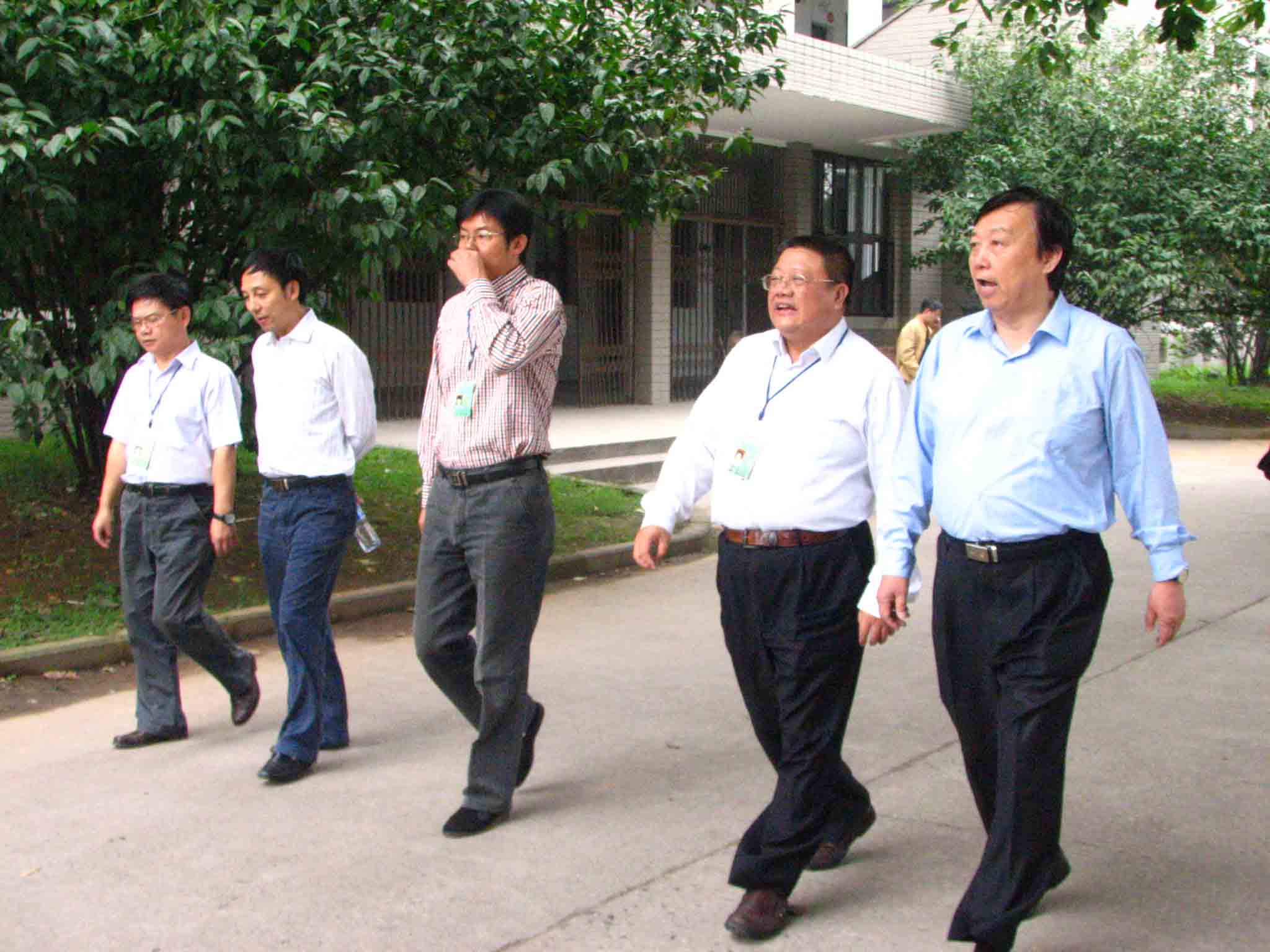 ,教育部基础教育司郑增仪(右一)在市教局副局长许建国(左二)的陪同下到泸州高中调研,查看了泸高的校园面貌、基本设施,听取了泸高领导对学校情况的汇报。