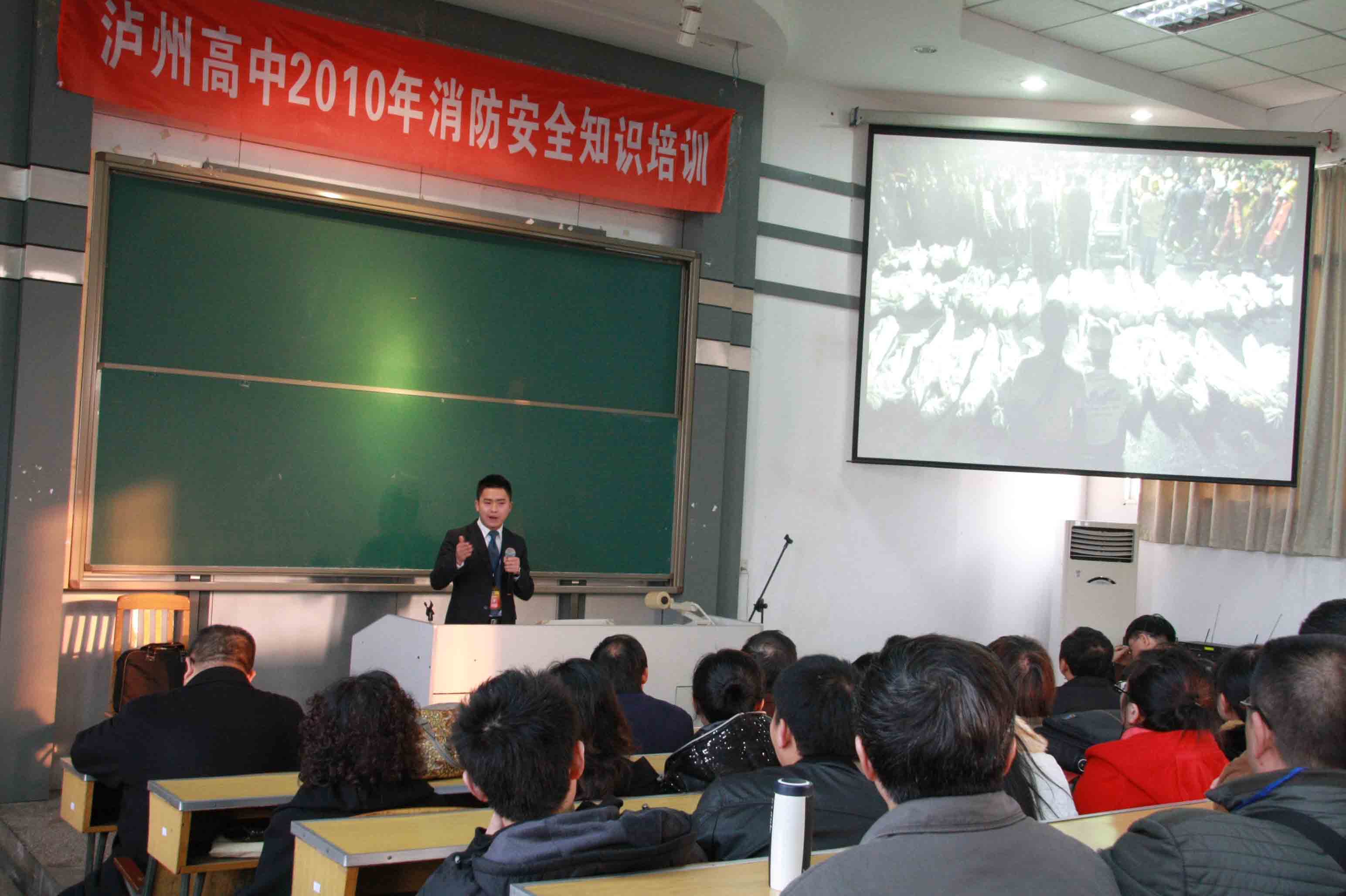 11月30日,泸州高中约请市消防培训中心教官朱某对全校370多名教职工进行消防安全知识培训。