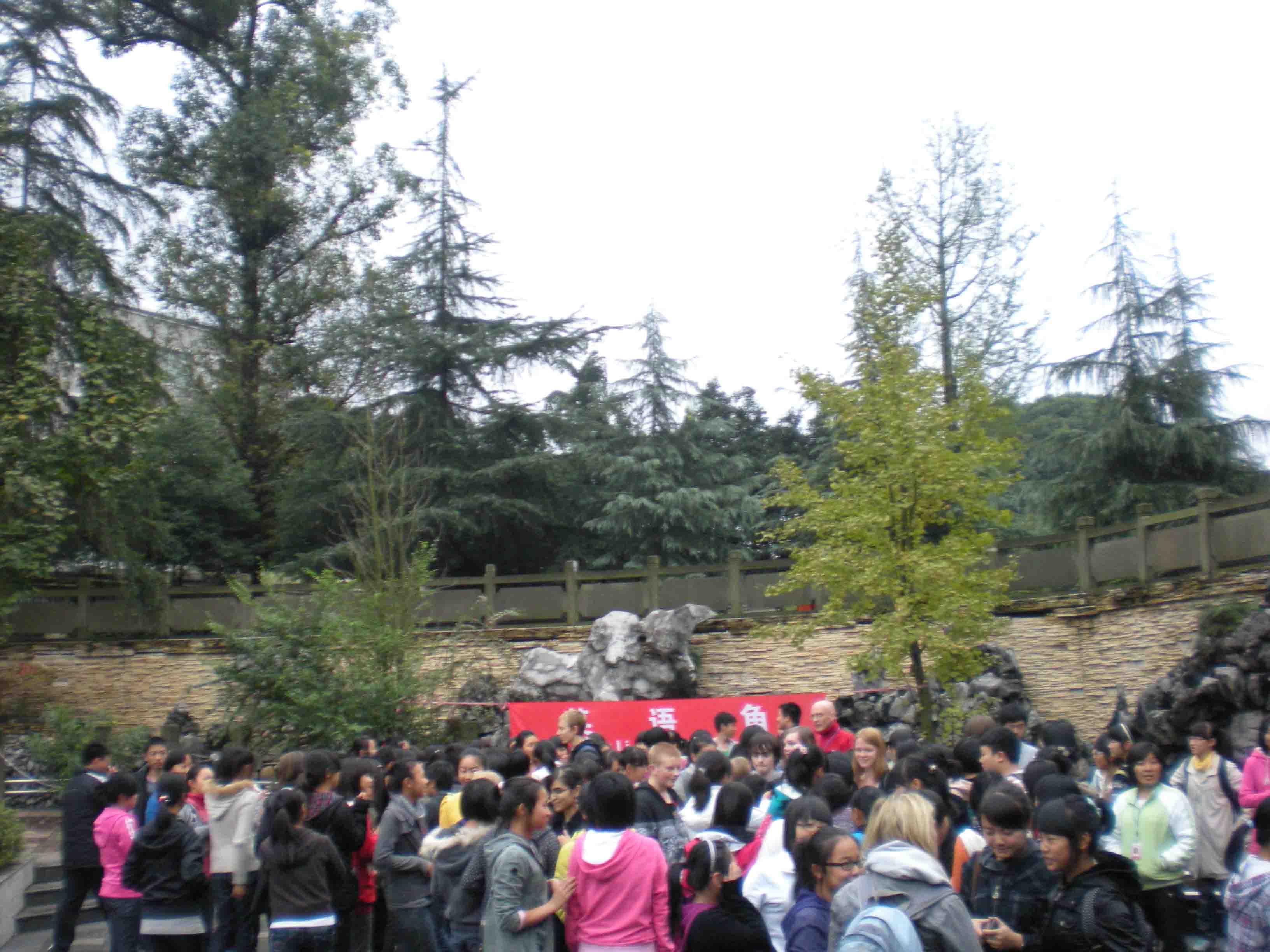 在曲水广场,泸皮两校的师生进行开展英语交流活动