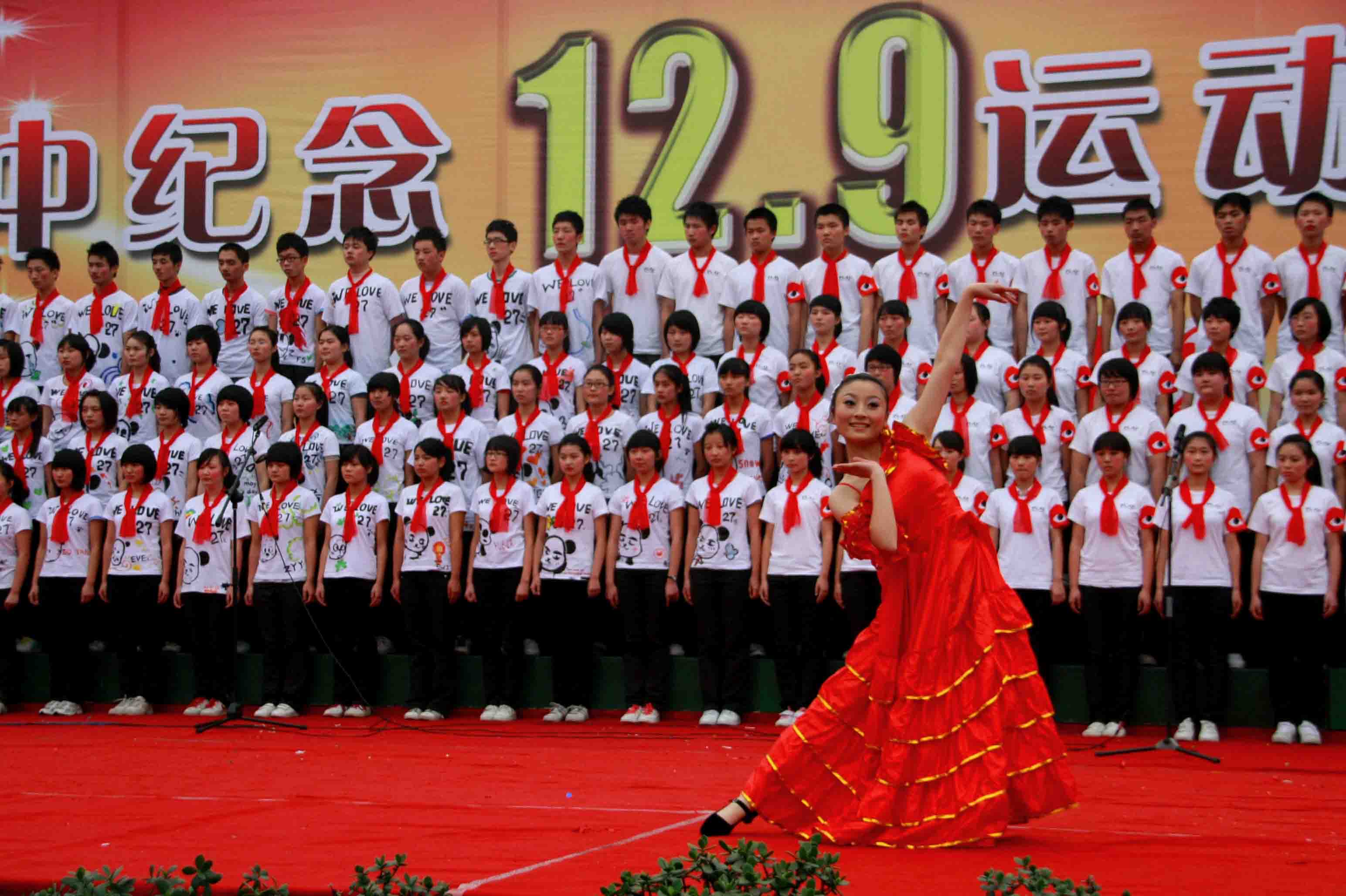 为了纪念“12·9”运动,在12月9、10两日,泸州高中团委会分别组织高一、高二年级4000多名师生隆重举行文艺演出比赛。市教育局团委书记、党委办副主任陶俊梅,学校党政领导及各中干部观看了文艺节目。泸高党总支书记、校长肖林在开幕式上作了重要讲话。