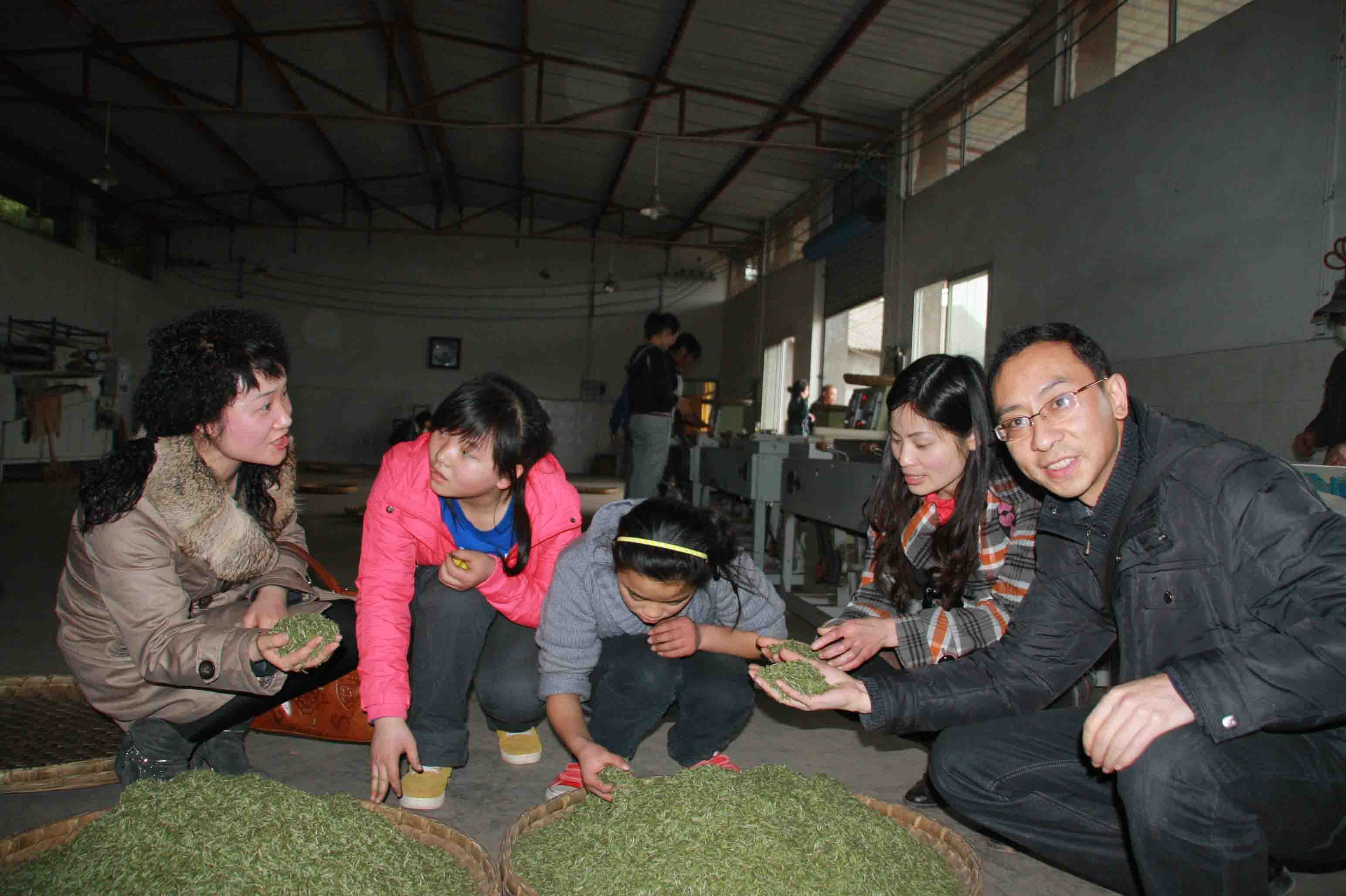 把茶叶送到制作车间,浓浓的茶香沁人心脾,学生们参观了茶叶的制作过程,向车间工人请教了一些他们不懂的制茶工艺和茶叶经营情况,当听说1斤如雀舌样的干茶叶能卖1000多块钱时,都非常感叹。