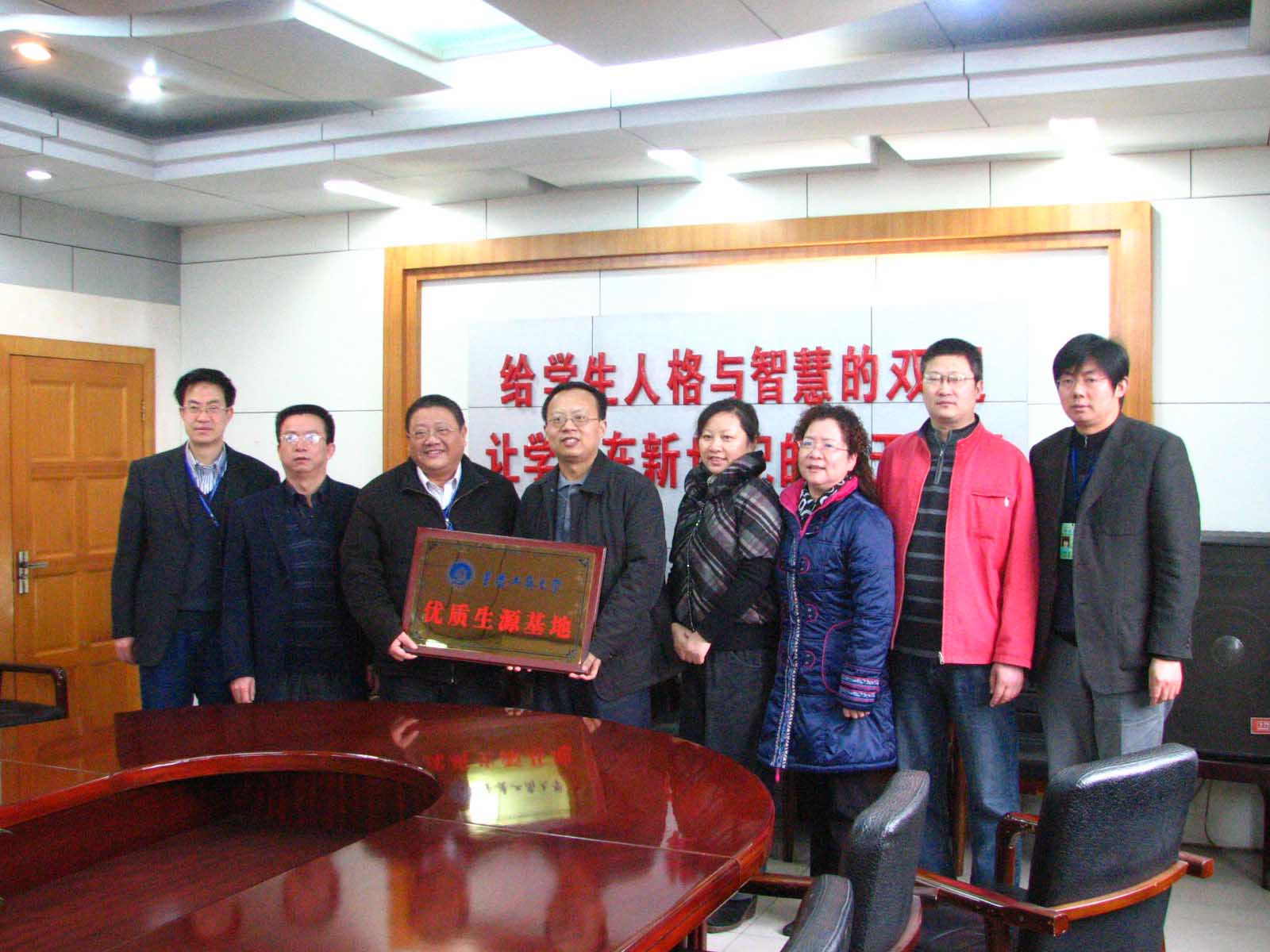 3月11日,重庆工商大学有关负责人到泸州高中考察,向泸州高中授予优质生源基地的牌子,认为泸州高中每年都有很多学生报考重庆商大,这些学生综合素质高,可持续发展力强,毕业后受到用人单位和社会的好评,表示愿意与泸州高中密切合作,让泸州高中有更多的优秀学生报考重庆商大。