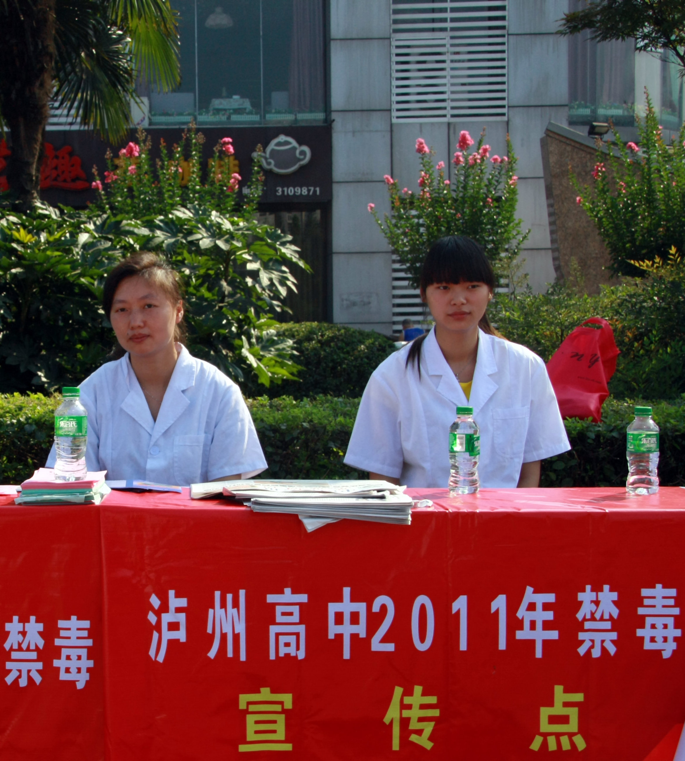 ”禁毒宣传活动期间,泸州高中积极响应市里的号召,在大梯步文化广场开展宣传禁毒活动。(古邦伦)