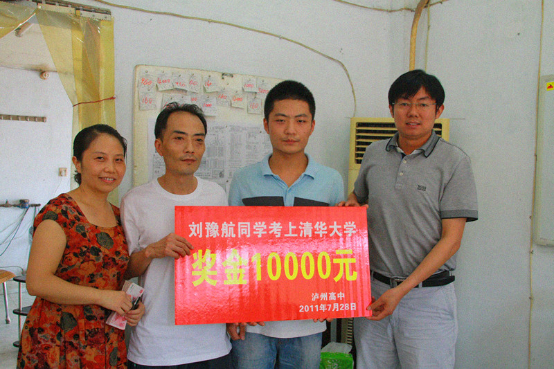 刘豫航考上清华大学 泸高领导送去奖金