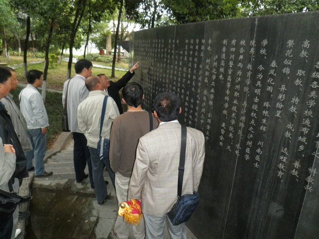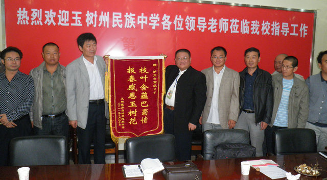 访问团认真参观了泸高校园,学生公寓、食堂、游泳馆,并深入课堂听课,同泸高教师进行教艺交流。泸州高中领导向访问团介绍了新课程改革实施情况。访问团向泸州高中赠送了印有“枝叶含蕴巴蜀情 报春感恩玉树花”的锦帜。