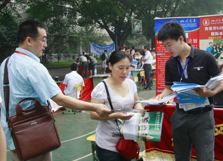6月21日,中国人民大学、四川大学等几十所第一、二批录取的大学到泸州高中设点开展招生宣传活动。前来咨询的高三学生及学生家长络绎不绝,纷纷了解这些高校所设专业、招生计划等相关情况。不少学生、家长还收集了各高校的宣传资料带回去阅读,便于更好地填写今年高考志愿。(古邦伦)