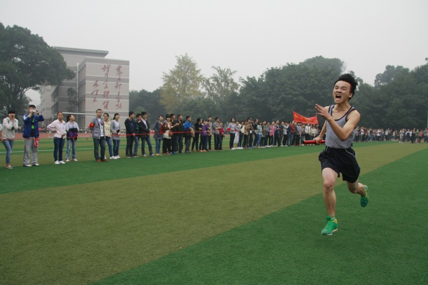 笔者观察到,赛场内外充满了虎虎生气,洋溢着热烈祥和的气氛。有的学生摔倒了,爬起来继续往前冲;有的学生摔伤了,不顾疼痛,一支脚跳着冲到终点;有的学生体力消耗殆尽,但仍然不退出比赛;有的学生站不起来了,有同学背着走扶着走;更有赛场周围的学生敲锣打鼓、振臂呐喊、采写稿件、摇晃着印有激励口号的彩旗,为运动员们鼓劲加油。