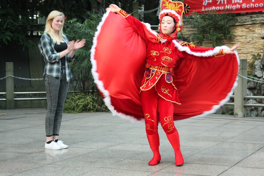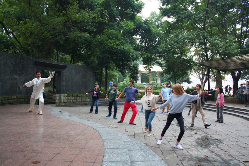 在之前的七天时间里,他们学习中国的汉语、艺术、武术,体味中国的茶艺、饮食文化、家庭生活,参观泸州的市容市貌、老窖生产车间、博物馆,游览天仙垌景区,感受长江、沱江的壮美,和泸高师生一起参加劳动实践活动、欣赏长江石、表演文艺节目,让他们高兴得不亦乐乎,啜饮着一道道精神大餐,给他们留下了难忘的象。
