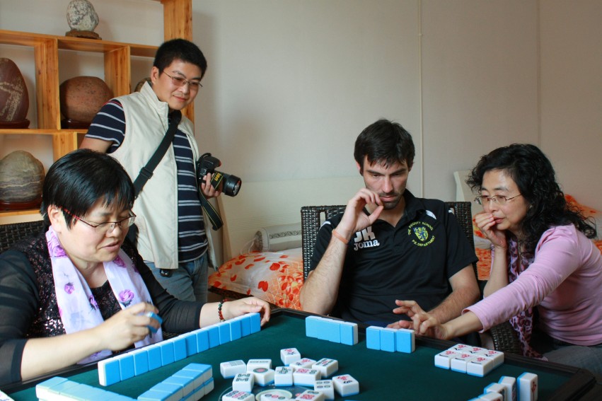 打中国麻将。