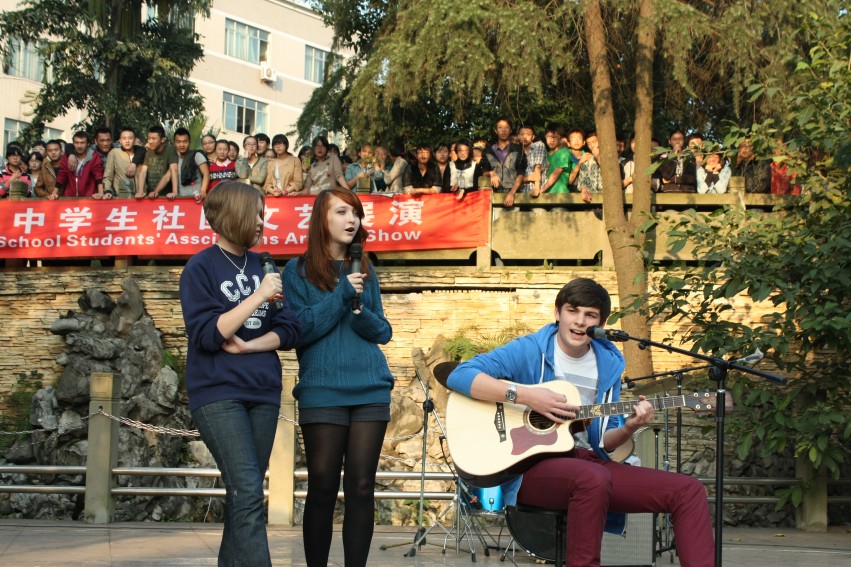 在头天的欢送晚会上,几名皮校学生用汉语深情地唱出了“我的朋友在中国”,“我的朋友在这里(指会场上的泸高师生)”。(古帮伦)