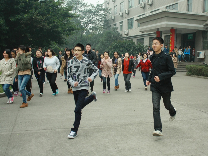 清晨 逃生警报突然在泸高校园响起