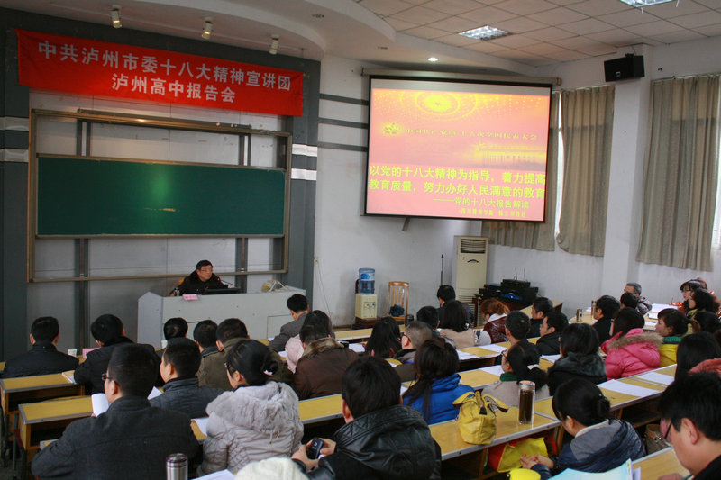 党总支书记、校长肖林表示,听了陈教授的报告,对十八大精神理解得更加全面深刻,十八报告为学校工作指明了正确方向,“我们将抓住机遇,早日谋划,攻艰克难,把泸州高中奋力推向新台阶。”