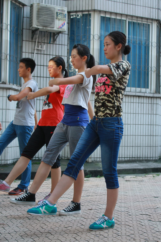 龙沐榕告诉笔者:开头几天,天气很热,太阳晒在头上火辣辣的,两眼直冒金星。再加训练强度大,每一个动作都要求高,早晨起床时大小腿都还在发痛。但通过几天的训练,忍受能力增强了,感觉走步的姿势更加正确,因此暗下决心决不退缩,一定以优异的成绩为学校和21班争光。