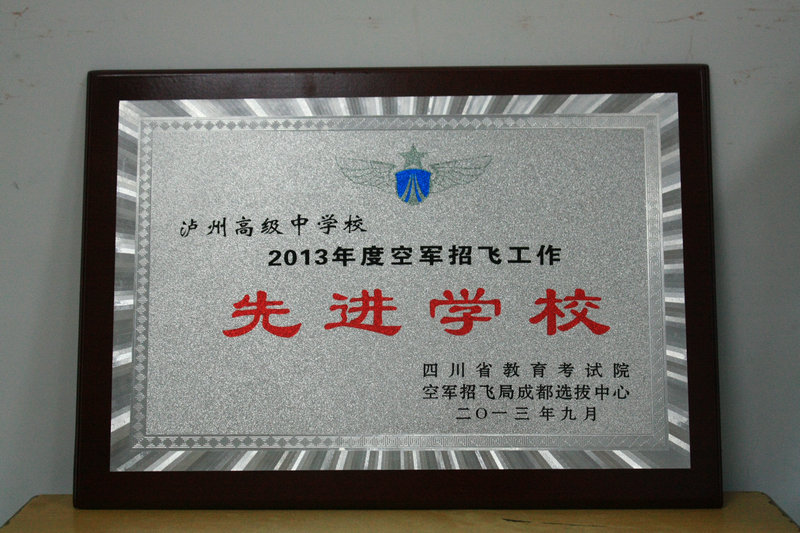 9月18日获悉,泸州高中被省教育考试院、空军招飞成都选拔中心授予2013年度空军招飞工作先进学校。据悉,今年泸州高中有