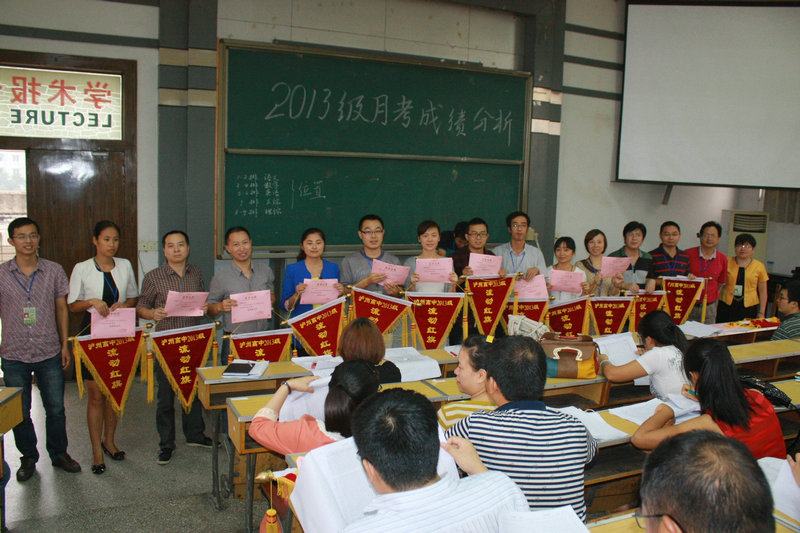日,泸州高中高一年级组举行月考成绩分析会。会上就常规管理和月考成绩突出的班级颁发了流动红旗。(古邦伦)
