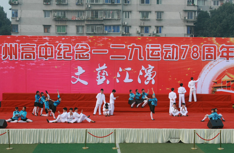 12月3、4日,泸州高中团委分别组织高一、高二年级举办文艺汇演比赛。活动旨在于弘扬“12·9”运动爱国主义精神,培养学生爱国主义高尚情操,提升学生的综合素质,丰富校园文化生活。