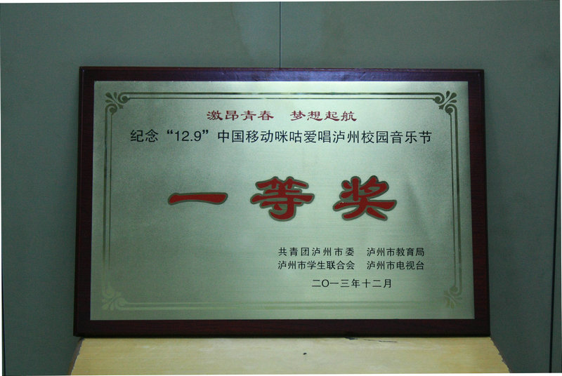 ”中国移动咪咕爱唱泸州校园音乐节活动中荣获一等奖。