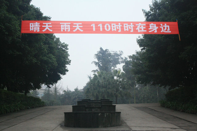 “110”纪念日 泸州高悬挂标语