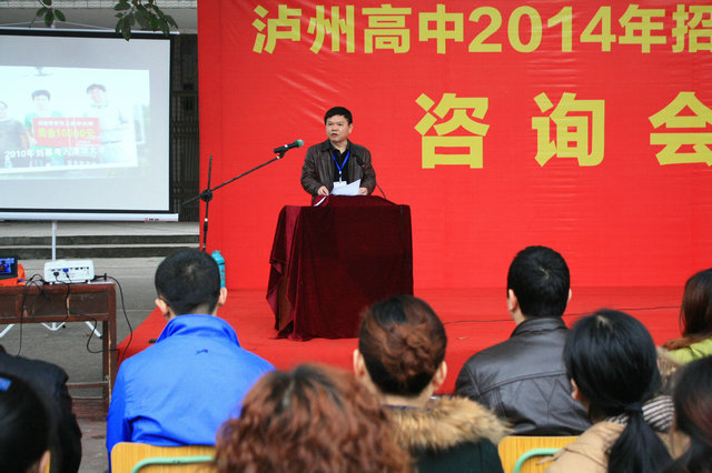 咨询大会上,党委书记、校长李渝江向到会学生和家长详细介绍了泸州高中60年发展取得的辉煌成就、泸州高中招生政策和填报泸州高中应注意的事项。泸州高中还特为城区各初中学校、区县、市外、艺体特长学生设置了招生咨询台,便于学生和家长更详尽了解招生入学事宜。