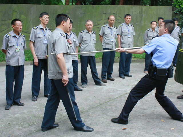 授课民警对安保工作中可能出现的突发情况进行了逐项讲解和示范,并对防刺衣、盾牌、甩棍、防暴叉的使用和可疑人员、可疑物品的识别进行了专项培训。参训人员情绪高涨、认真学习训练,达到了培训的预期效果。(杨玉)