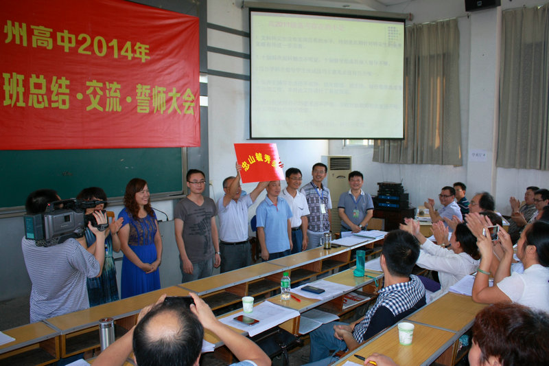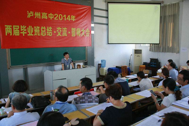 9月21日,泸州高中召开“两届毕业班总结、交流、誓师大会”,会上既讲成绩,又找问题,实现奖惩逗硬,兑现目标考核。
