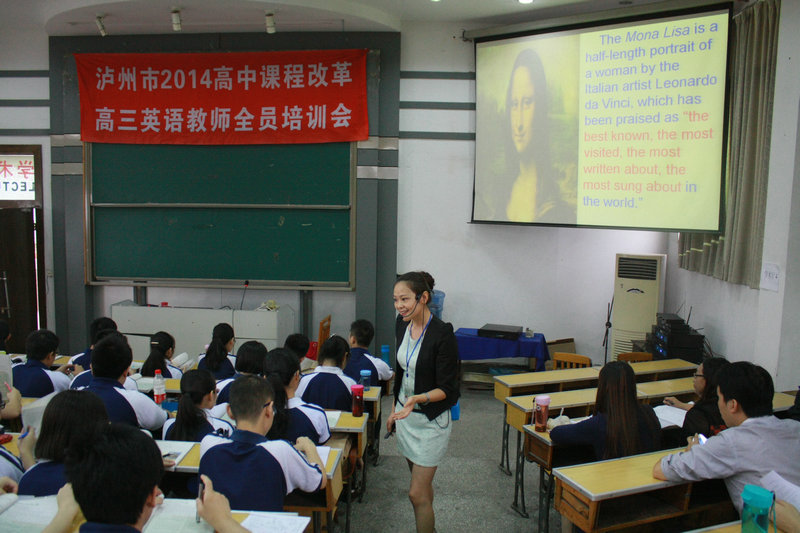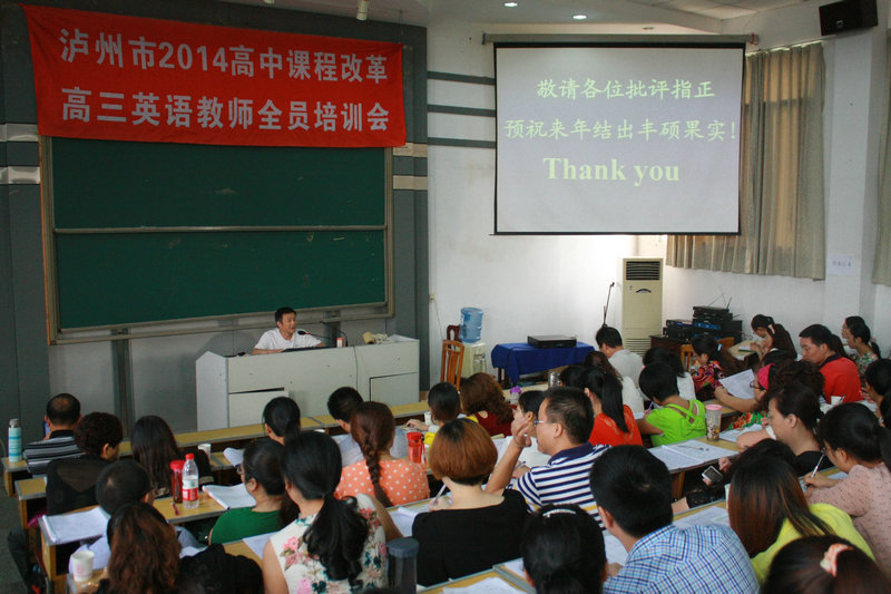 10月9、10日,全市2014高中课程改革高三英语教师全员培训会在泸州高中举行。会上,泸州高中教科室副主任、英语高级教师周礼军作了经验交流,青年教师黄译向大会献研究课。