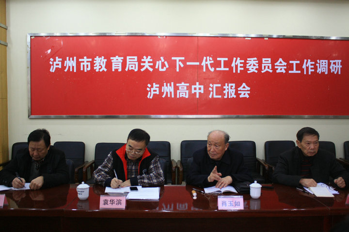 11月21日,市教育局关工委领导袁华滨、肖玉如等一行到泸州高中调研,在听取泸州高中领导的汇报后,对该校关工委所做的工作给予充分肯定,并对今后工作提出了指导性意见。(古邦伦)