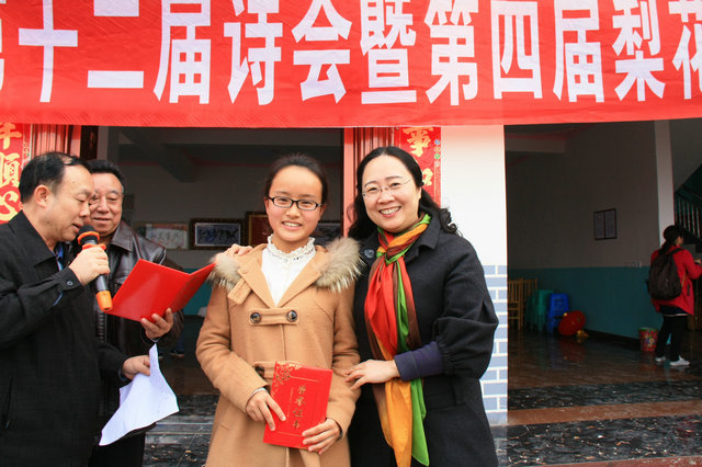 3月7日,“中国酒城.泸州第十二届诗会暨第四届梨花诗会”在江阳区丹林镇梨花村举行,泸州高中教师宋孟哲、古邦伦带领高一年级学生王怡蘅、梁雪妍、刘毓卓、罗槿瑜参加活动,所献9首诗歌均获得好评,其中王怡蘅现场诵诗获奖,是中学生中唯一获奖者。(古邦伦)