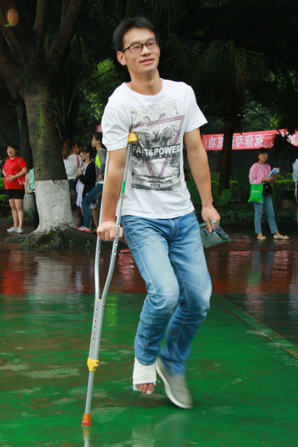 早晨时阴时雨,近两天的天气特别凉爽,很有利于考试。经过长时间的复习迎考准,考生们信心满满。高级培训学校的学生银西阳,前段时间打球伤了脚,扎了厚厚的绷带,他柱着拐杖来考试,面带喜悦,看不出一点焦虑。据说该生平时成绩居全校第一名,预测他带伤高考同样会取得优异成绩。(古邦伦)