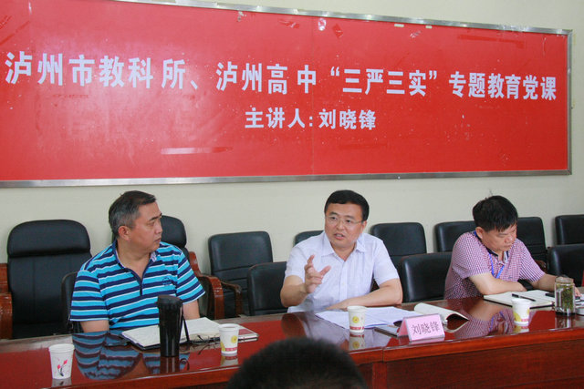 6月19日,市教育局副局长刘晓峰到泸州高中上“三严三实”专题教育党课,该校中层以上党员干部参加学习。