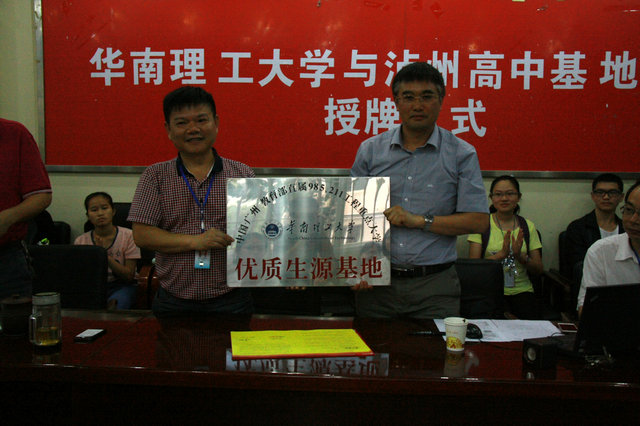 6月20日,华南理工大学在泸州高中举行授牌仪式,授予泸州高中“优质生源基地”称号。华南理工大学材料科学与工程学院教授税安泽,详细介绍了华南理工大学的情况,充分肯定了泸州高中近年获得的丰硕办学成果,诚挚希望有更多的泸高毕业生到华南理工大学学习、深造。