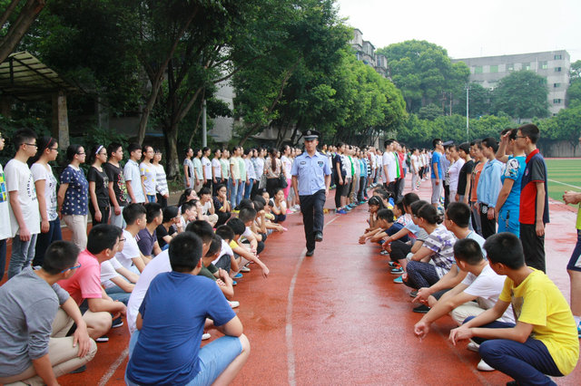 8月25日,泸州高中运动场上口令震天,2000多名2015级新生正认真地向四川警察学院的教官们学习军事技术。本届军训时间为期1周,活动期间主要对学生进行国防知识教育、军事技能训练、严格的军化管理、消防应急演练、基本礼仪培训,同时还对新学生进行校史教育。通过开展以军训为主线的一系列活动,为学生在泸高3年的学习生活打下良好基础。(古邦伦)
